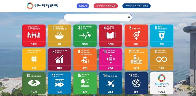 안산시지속가능발전협의회(상임회장 윤기준, 이하 안산지속협)는 안산시의 지속가능발전을 위해 경제・사회・환경 각 분야에서 활동하는 다양한 공익활동 기관・단체들의 현황을 한 눈에 볼 수 있는 「안산시지속가능발전포털(www.ansansdgs.com)」을 구축‧오픈하였다.