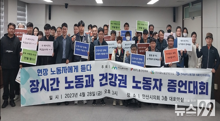 “장시간노동과 건강권 증언대회”는 지난 4월 28일 오후 3시 안산시의회 회의실에서 (사)안산노동안전센터, 민주노총 안산지부, (사)시화노동정책연구소, 금속노조 시흥안산지역지회의 공동주최로 열렸다.