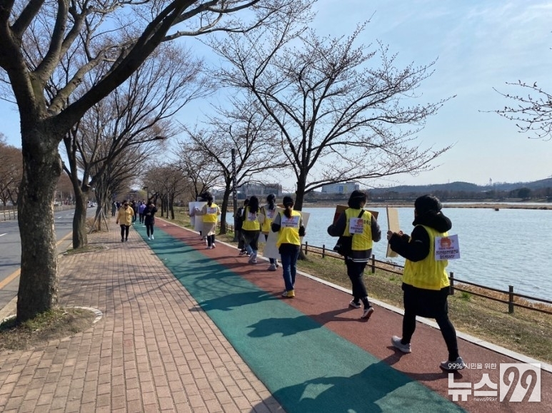 6.15안산본부는 “한미 양국이 4월 12일부터 15일까지 한반도의 전시상황을 가정한 위기관리 참모훈련 진행, 4월 18일(월)부터 28일(목)까지는 본 훈련을 진행하기로 되어 있는 상황”에서 “한반도의 평화를 위협하는 한미연합군사훈련의 문제점을 시민들에게 알리고, 중단을 촉구하는 목소리를 모으기 위해 시민들이 많이 찾는 화랑유원지를 찾아서 평화한바퀴 행사를 진행하게 되었다.”며 취지를 설명했다.