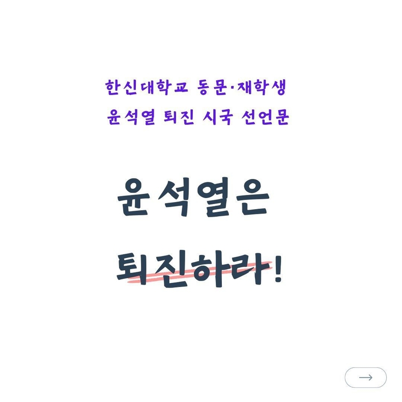 민주주의를 위한 싸움에 가장 앞장섰던 한신대학교의 투쟁의 전통, 불의에 굴하지 않았던 열사들의 정신을 이어받아, 퇴행의 시대를 만들어가는 윤석열 정부를 심판할 것이다. 한신의 재학생, 졸업생, 한신에 몸담은 모두의 이름으로 윤석열 정부의 퇴진을 다시 한 번 엄중히 촉구한다.
